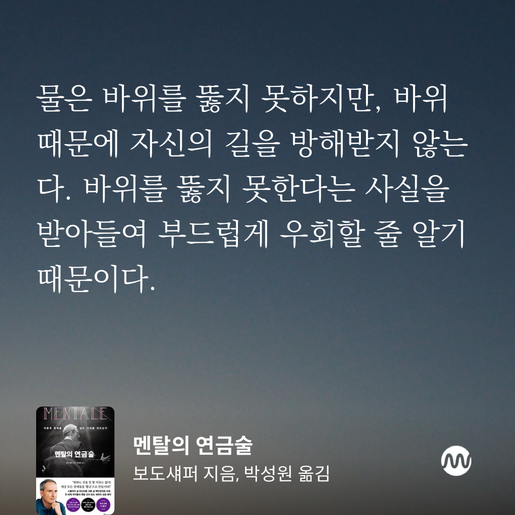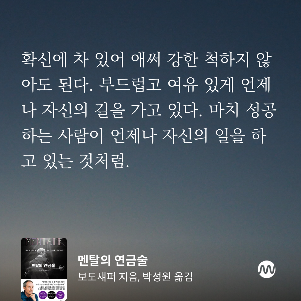 나는 오늘 쉼 없이 흐르는 물처럼 확신에 찬 신념을 바탕으로 여유있게 나의 길을 갈 것이고 그런 내 자신의 존재 자체에 가장 행복하다.
