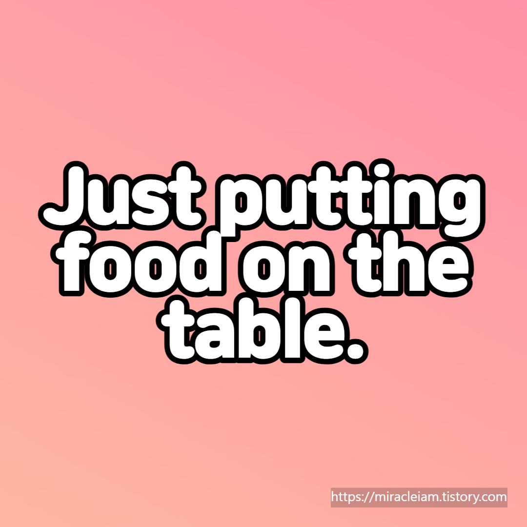 이러한 관점에서 '그냥 먹고 살려고 하는거죠' 라는 표현은 그리 좋은 표현은 아닌듯 하지만 영어로는 Just putting food on the table. 이라고 말한다.