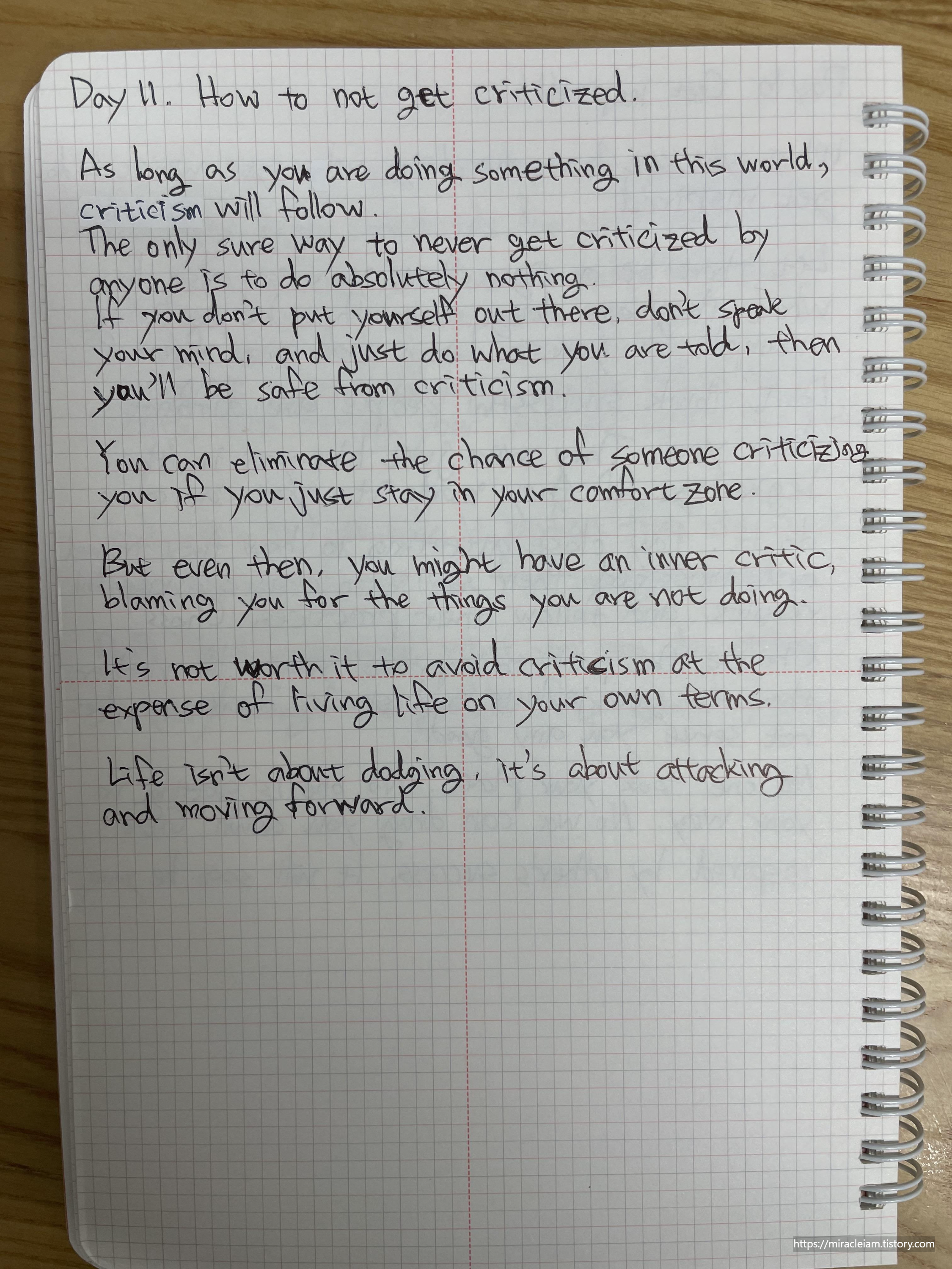 | 나의 첫 영어 필사_Day 13_Stop bullying yourself. (0) | 2023.05.06 |