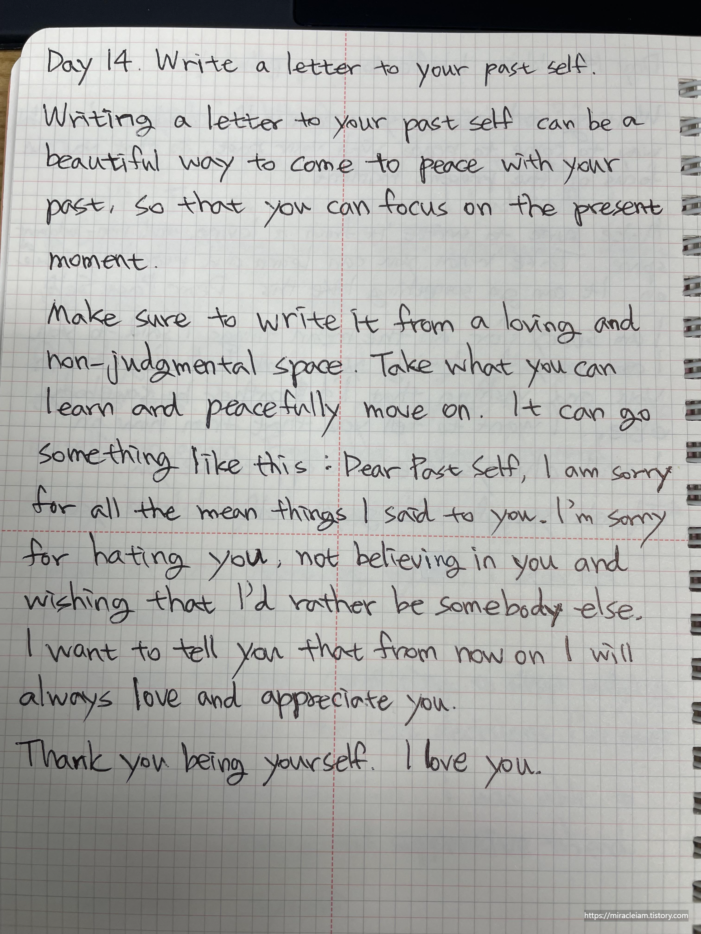 과거의 자신에게 편지를 쓰세요.
