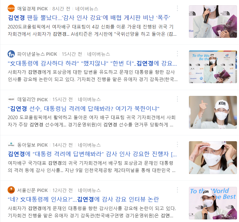 김연경 선수뿐만 아니라 이번 올림픽 대회에서 여자 배구 4강이라는 결과를 만들어낸 대표팀 선수들을 앞에 두고 상금 운운하며 고마움을 강요한 행위는 다분히 지나쳐 보였습니다. 왜 이런 상황이 연출되었는지 모르겠지만 이게 다 누구 덕분이고 누구 때문인지에 너무 집착하는 요즘 분위기와도 관련되지 않았으면 하는 바램입니다.