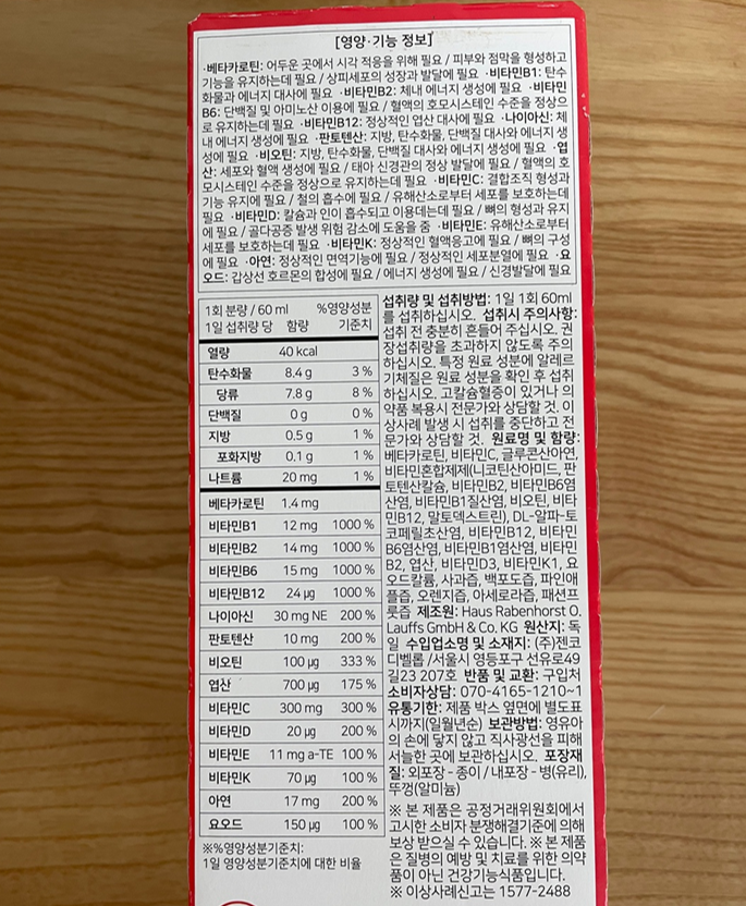 하루에 60ml 작은 갈색병 하나를 마시면 15가지 비티만과 미네랄, 베타카로틴을