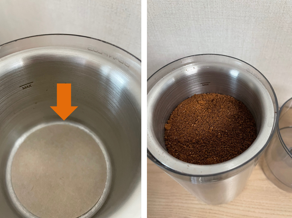 전동그라인더의 뚜껑을 열고 블레이드가 설치되어 있는 그라인더 속으로 원두를 담아 줍니다. 이때 그라인더에서 넘치지 않을 정도록 원두를 담아 줘야 하는데 만약 더 많은 양으로 더치커피를 내리고 싶다면 원두가 넘치지 않게 담는 것을 기준으로 두 번 이상 추가로 분쇄하면 되겠습니다.