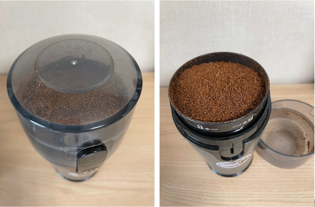 원두를 20-30초가량 분쇄하고 나서 뚜껑을 열면 정말이지 구수한 원두 향이 집안으로 퍼지게 되는데 이때 기분이 참 좋아집니다. 특히 집에 에어컨이나 선풍기가 있어 공기 순환이 잘 되도록 해 놓은 상태에서 원두를 분쇄해 보시면 경험해 보실 수 있습니다.