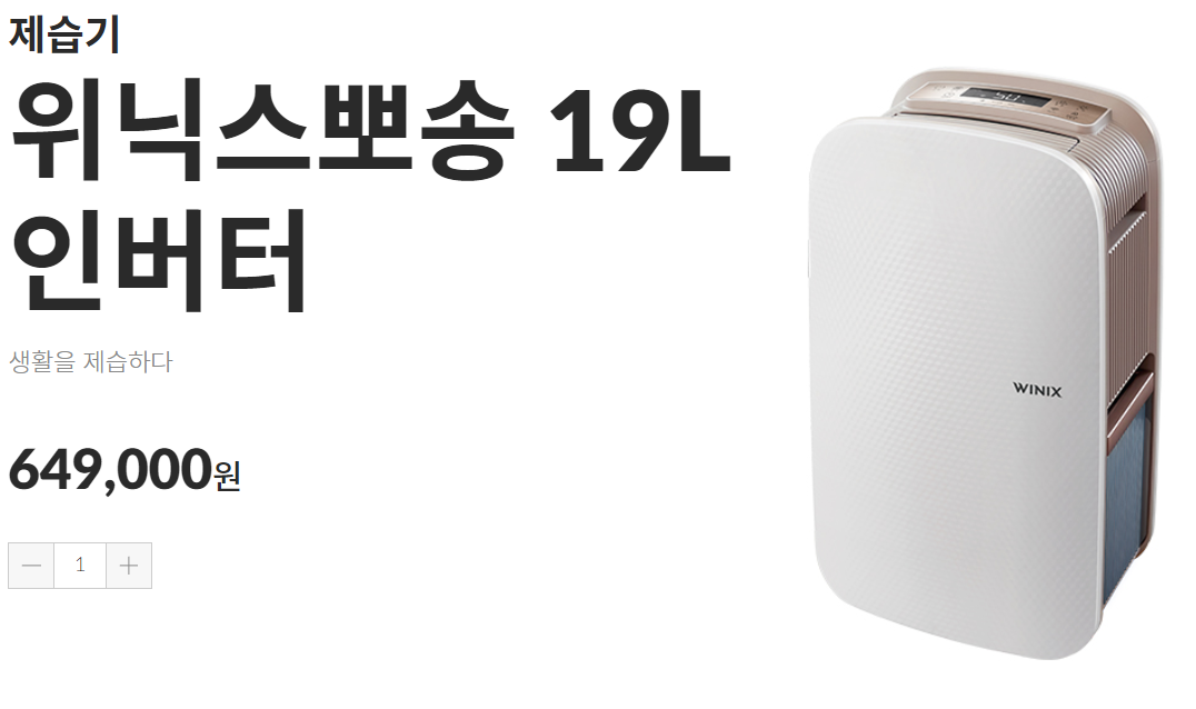 전자제품을 구매할 때 가격이 다소 비싸더라도 제값을 주되 기능이 뛰어난 제품을 사서 오래 사용하자는 주의인데 위닉스 뽀송 15리터는 이러한 제 기대를 매년 만족시켜 주고 있습니다. 그래서 현재도 동일 제품이 나오는지 위닉스 홈페이지에서 확인해 보았는데 동일한 디자인의 모델은 용량이 업그레이드돼서 19리터로 판매가 되고 있습니다. (15리터는 더 이상 판매하지 않습니다.)