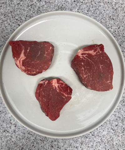 ㅇ 코스트코에서 구입한 안심 덩어리를 먹을만큼 덜어서 접시에 놓습니다. (한 덩어리는 성인 기준으로 적당히 배부르거나 조금 부족한 수준 일 것입니다.)