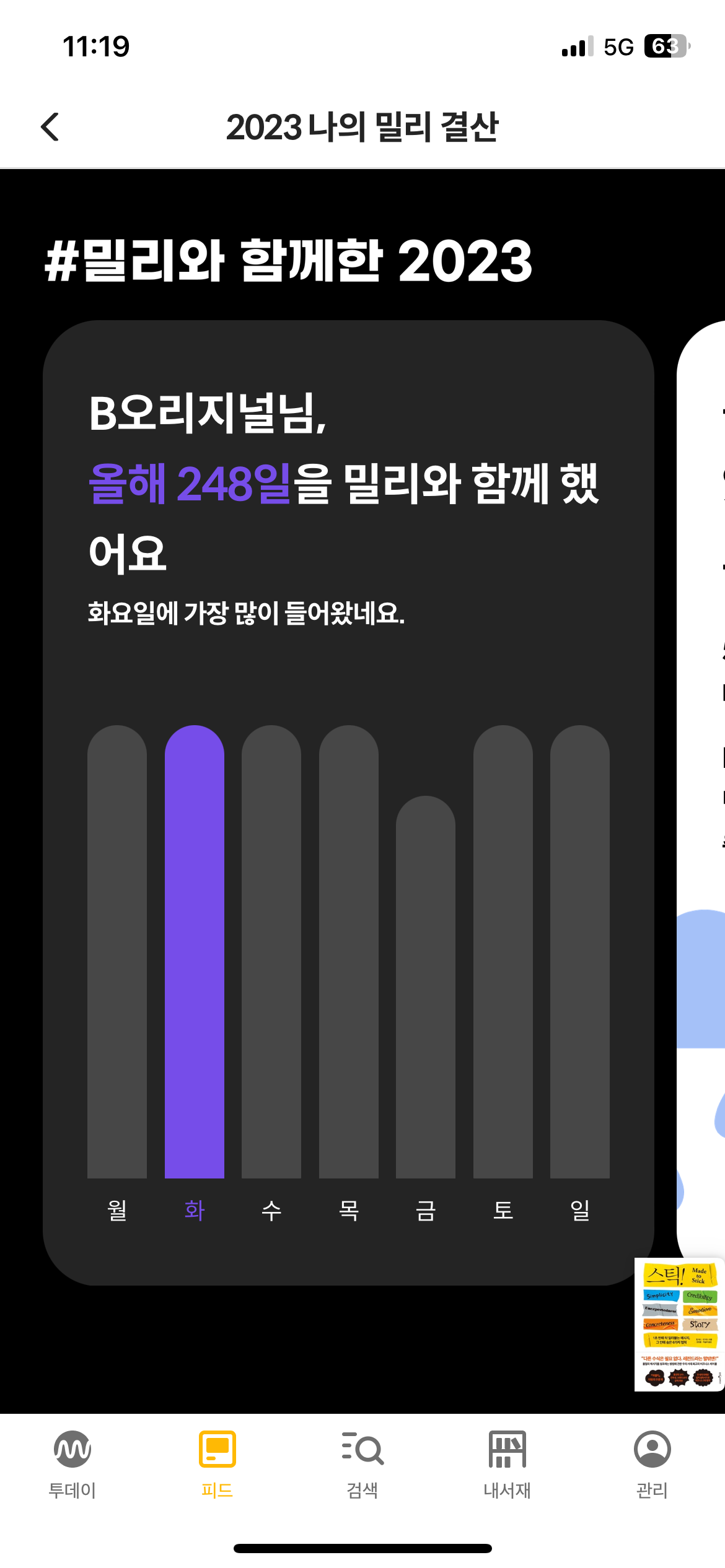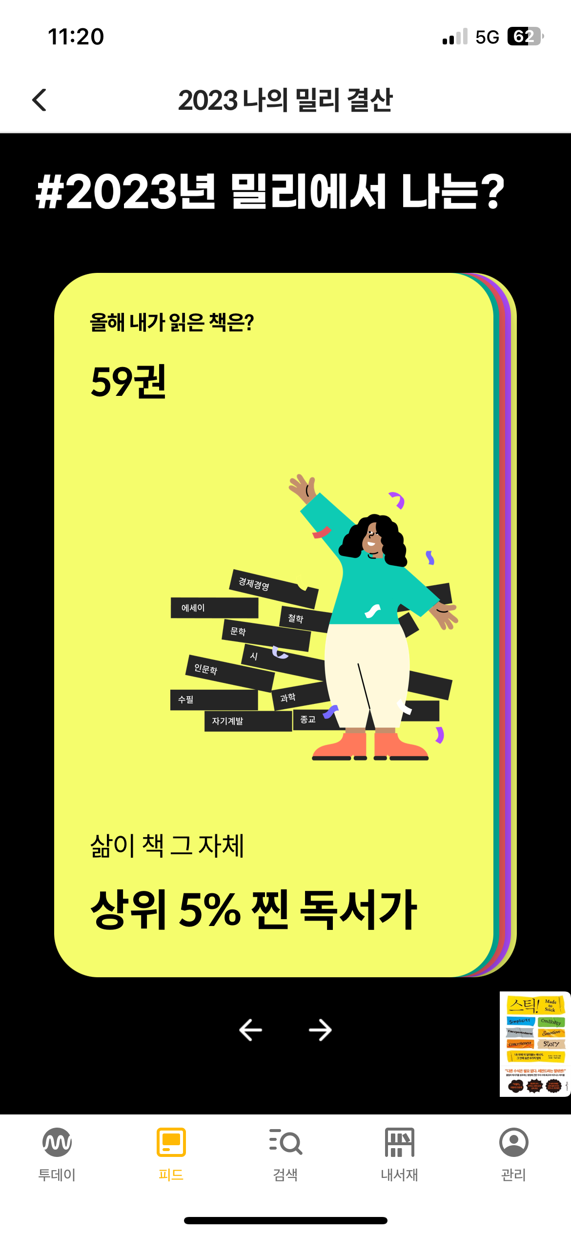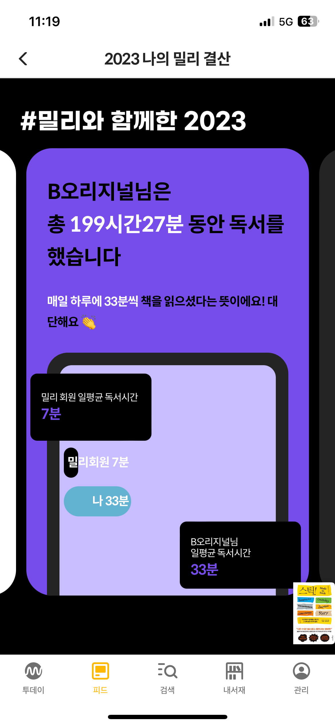 오늘 밀리의서재를 들어가 독서를 하려고 하다가 2023년 밀리의서재 연말결산 페이지가 눈에 들어와 확인해 보니 놀랍게도 내가 1년 전 세웠던 독서 목표를 달성한 것을 발견할 수 있었다.