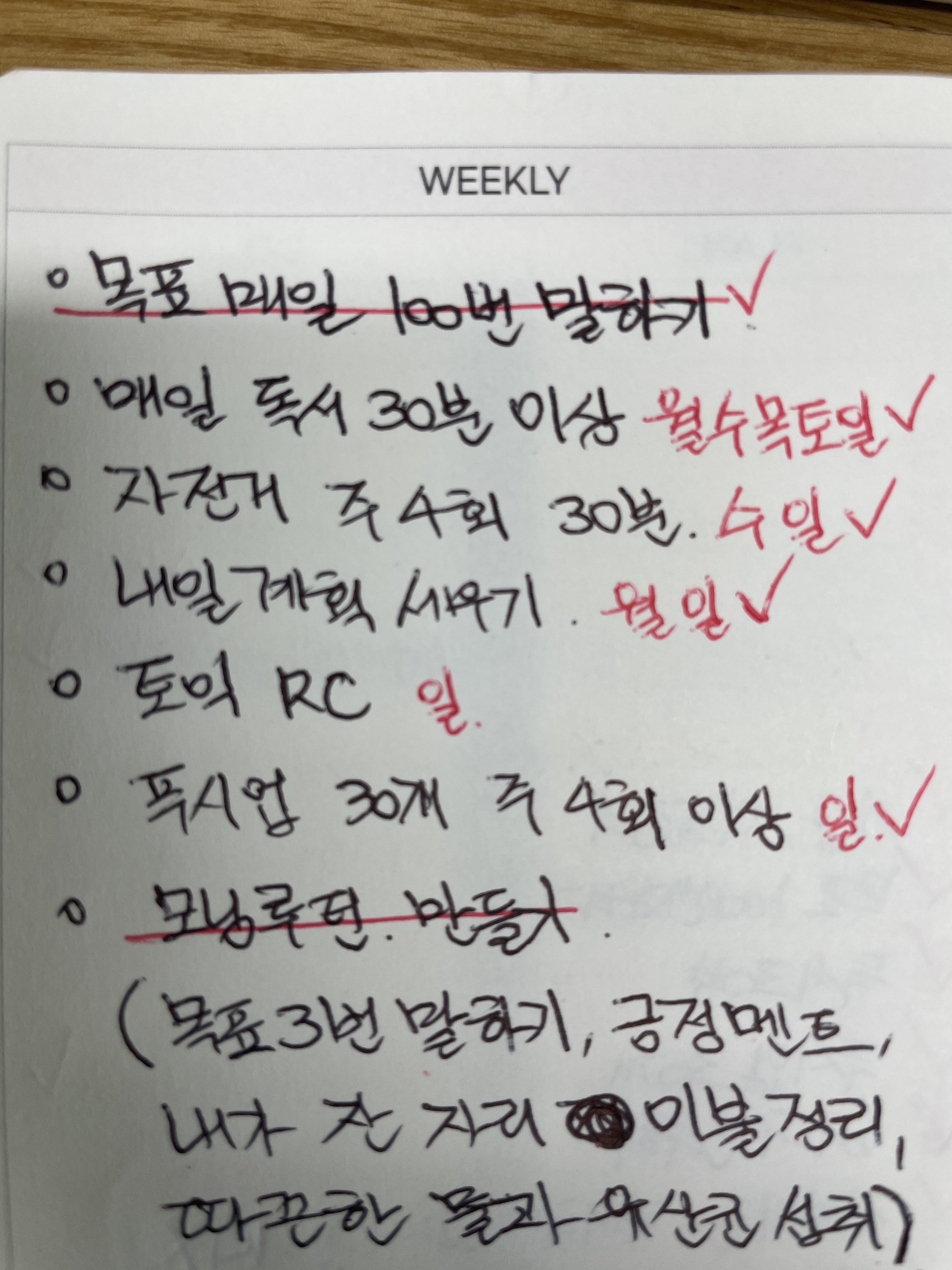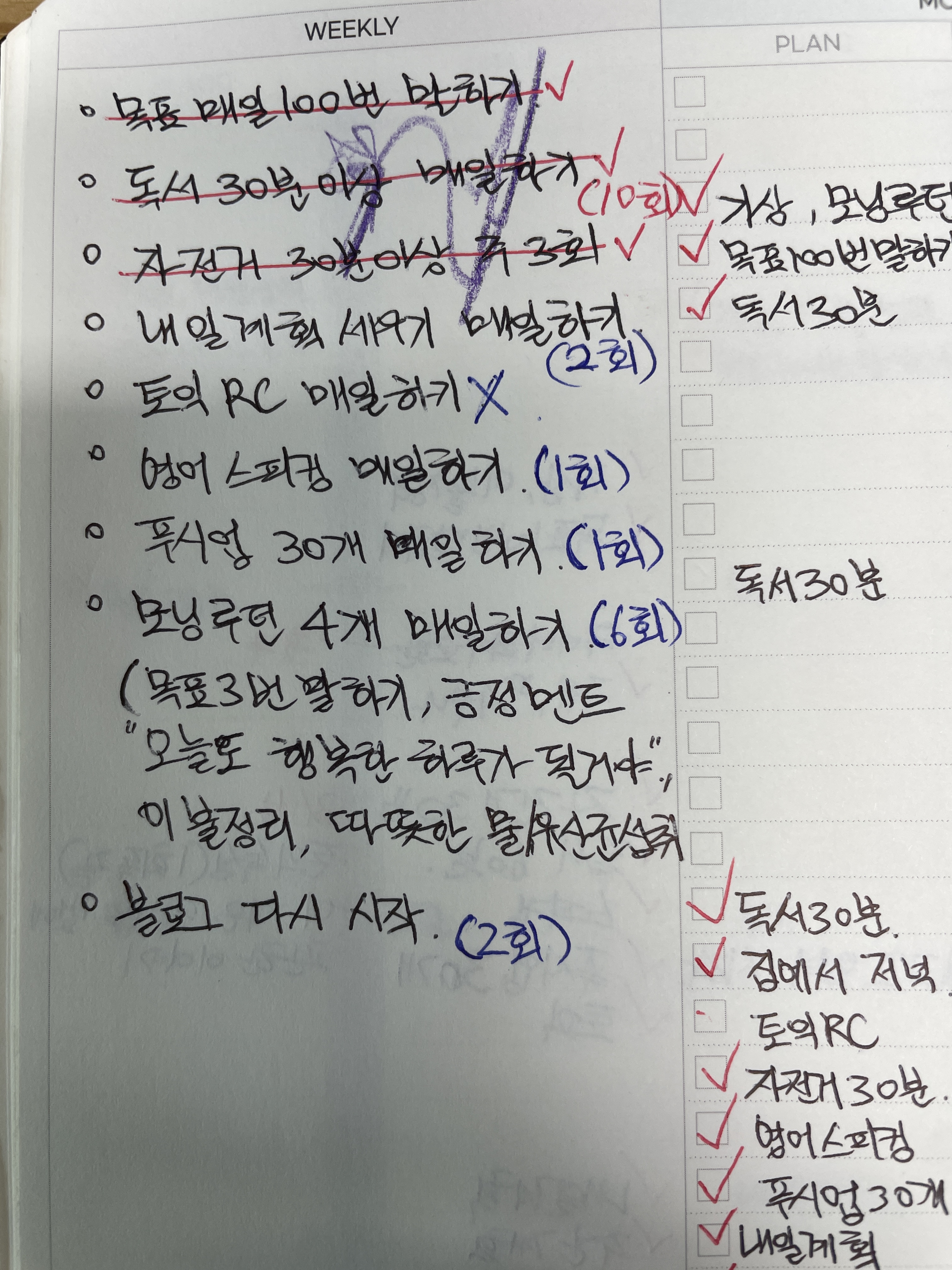 어제 세웠던 목표를 얼마나 실행했는지 체크하고 내일의 계획을 다이어리에 적고 잠자리에 드는 생활을 이어갔다.